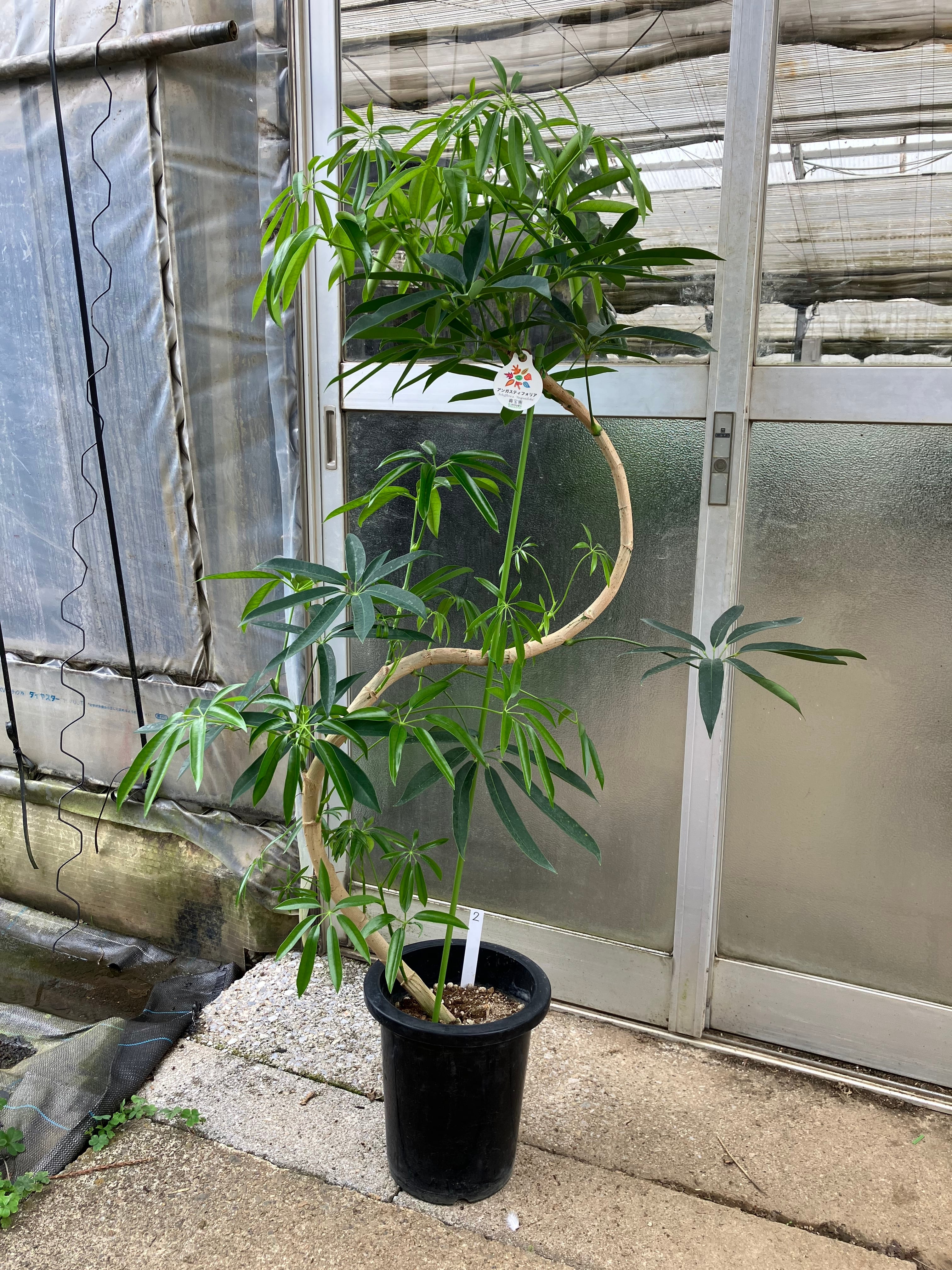 観葉植物はラテン語由来のものが多いのですが、こちらの品種はアンガスティ=狭い、細い。フォリア=葉っぱ。と言う意味。生産していて思う事は、とにかく陰や寒さにとても強いという事。こちらもベンガレンシスと一緒で、葉と幹の色のコントラストが非常に綺麗な品種です。